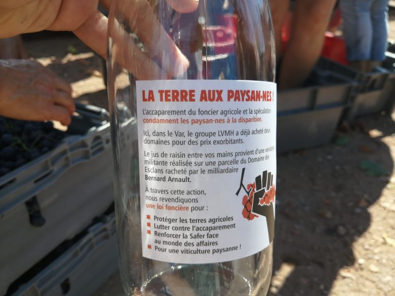 C'est pourquoi nous vendangeons les profits de ces spéculateurs aujourd'hui pour alerter sur les dérives de la spéculation foncière et de la financiarisation des structures agricoles. Il en va de l'autonomie et de l'avenir de la viticulture.