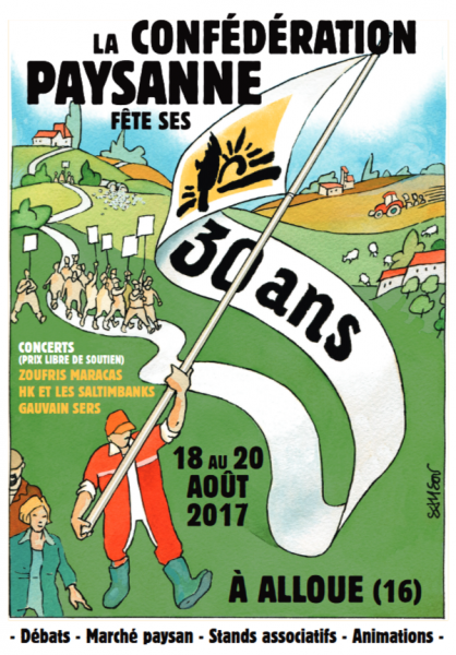 La Confédération paysanne fêtera ses 30 ans à Alloue dans les Charentes, entre Limoges et Angoulême, du vendredi 18 août au dimanche 20 août.