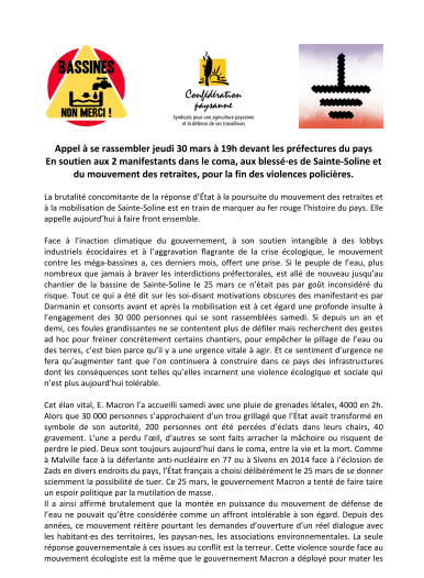 Plus de 62 lieux de rassemblement en soutien aux 2 manifestants dans le coma, aux blessé·es de #SainteSoline et des #retraites, et pour la fin des violences policières. 📍La carte des rassemblements : https://link.infini.fr/lieux ✍️Pour co-signer l'appel : ...